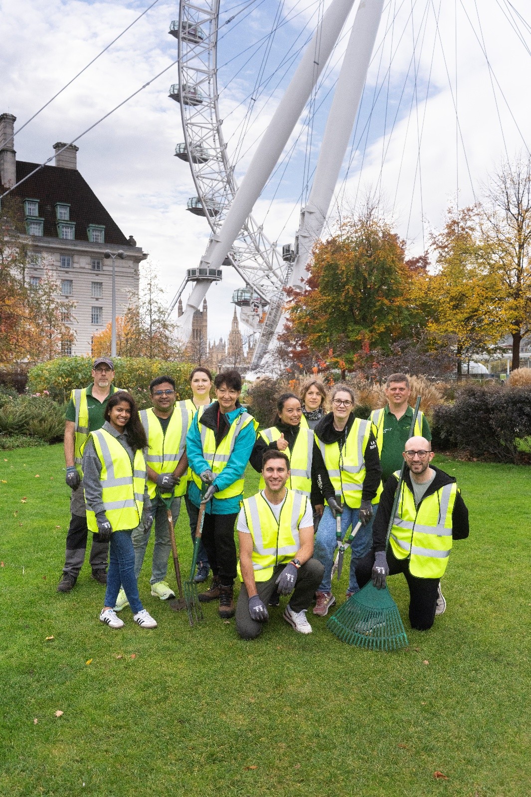 A group of PPHE employees on a volunteering day in Jubilee Gardens in London.